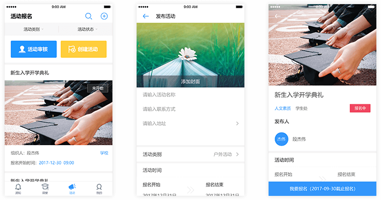 该中心提供了第二课堂校园活动的发布平台,学生可通过手机APP,进行活动报名、签到及评价等,系统可依据学生的活动参与情况自动计算学生的第二课堂认定成绩。